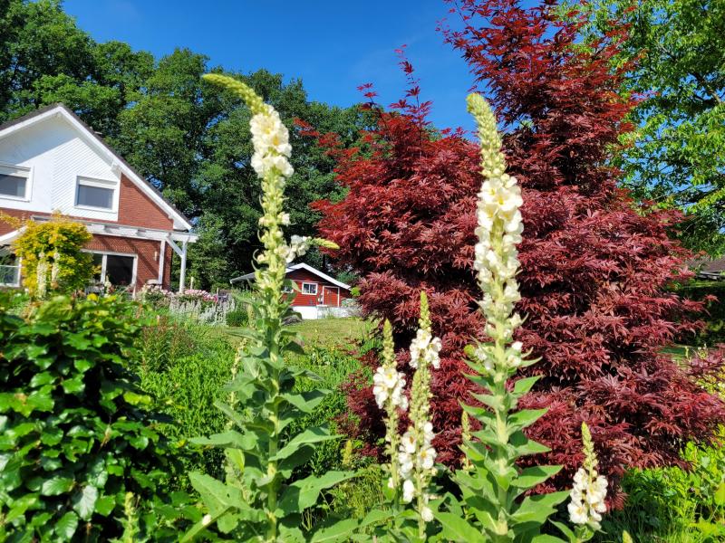 Hier muß ich meine weißen Königskerzen natürlich auch zeigen... sie haben sich mal wieder an vielen Stellen dazwischen gemogelt. ;)