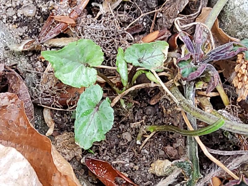 Erst dachte ich, ein Sämling von meiner V. mandshurica, aber die Blattfarbe stimmt nicht, ist zu bläulich. Die Blätter sind kaum 1cm lang, die Stiele rötlich.
