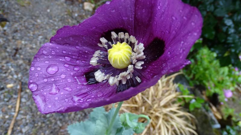 Bei uns zeigt sich an einigen Stellen Schlafmohn (Papaver somniferum)