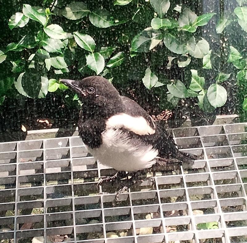 Hier springen gerade die kleinen Elstern im Innenhof rum. Fliegen können sie noch nicht, aber sie sind unendlich neugierig.