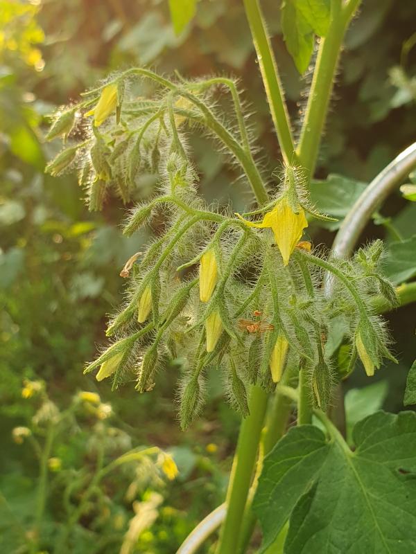 Ich bin sehr neugierig, ob es geklappt hat und wie eure "Herzchen" so gedeihen. (Statt der sperrigen Kreuzungsbezeichnung hatte ich Herzchen aufs Schild gemalt) Meine blühen üppig Multiflora, die Blätter sehen nach dem Papa aus und der Wuchs ist gedrungener, als die Ildi. Ich bin sehr gespannt, welche Farbe die Tomaten haben!