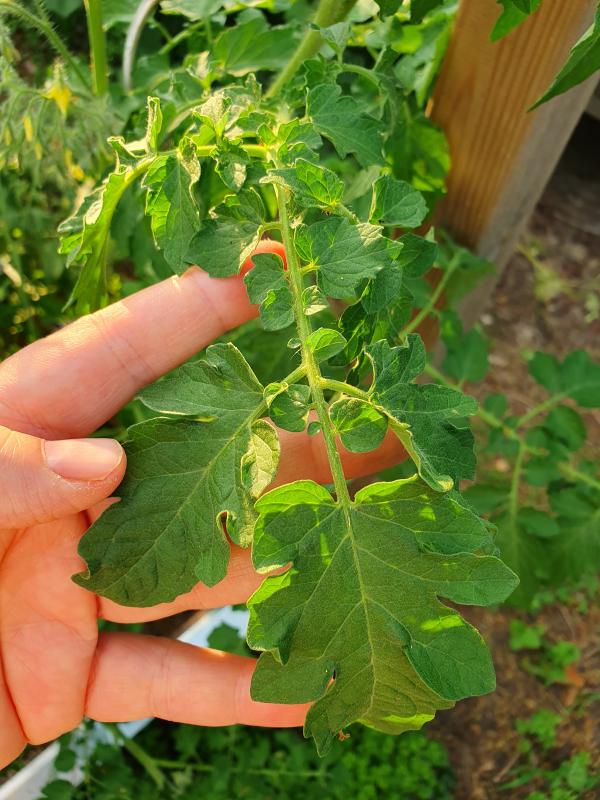 Hier ein Foto der Herzchentomate von den Blättern.