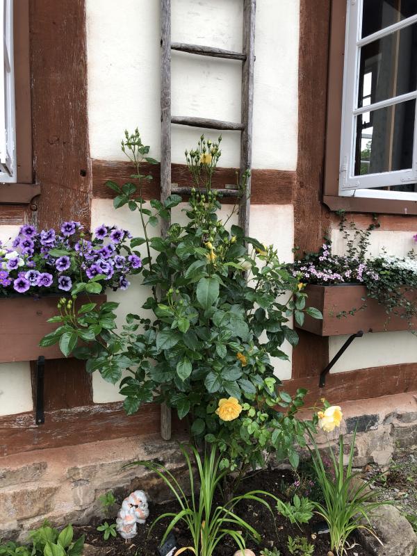 In meinem Garten blühen dieses Jahr die Kletterrosen überschwänglich, wahrscheinlich dank des vielen Maienregens.