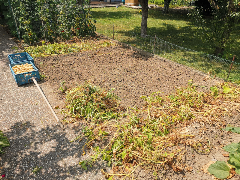 Bei den Frühkartoffeln wäre es mir egal, was die wegfressen, bekommt keine Braunfäule mehr. Von der ist aktuell aber tatsächlich nicht viel zu sehen. Da war das trockene Wetter wirklich ein Segen. Die späteren Sorten beginnen jetzt mit der Blüte.