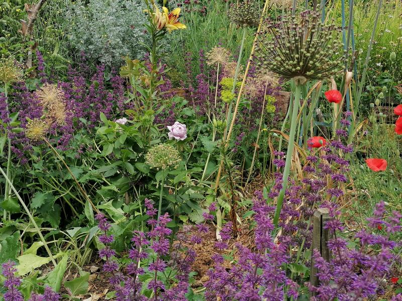 Rehmannia piasezkii - Knautia macedonica - Veronica longifolia cv.