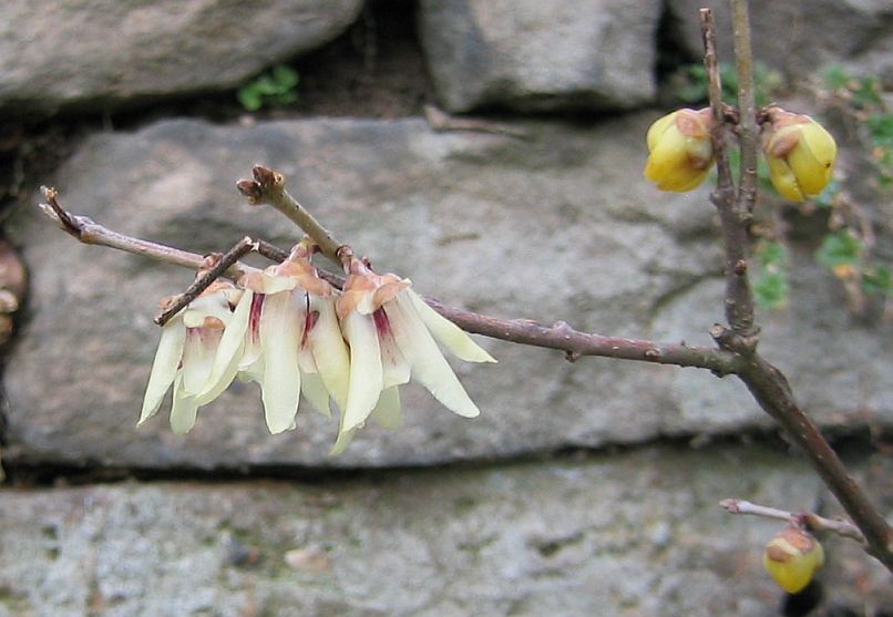 Der ungewöhnlich milde Winter beschert mir eine Blüte, die ich hier in meiner Klimazone gar nicht erwartet habe!Zum ersten Mal steht in Blüte: Chimonanthus praecox! Und wird daduch seinem deutschen Namen zum ersten Mal gerecht: Winterblüte.Bisher waren die Temperaturen nie so, dass er tatsächlich aufgeblüht ist. Nun erfreut er nicht nur durch die zartgelben Blüten, sondern auch noch durch einen wunderbar fruchtigen Duft!