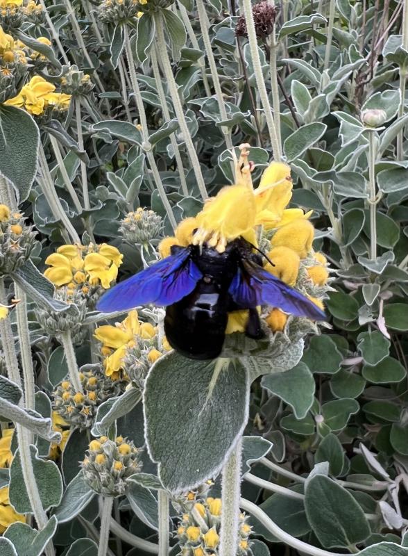 Sehr schön. Hier sind auch mehrere unterwegs, scheinen aber die Pollen von Exoten aus dem Mittelmeergebiet zu bevorzugen: Phlomis fruticosa, Asphodeline, Lavandula ...