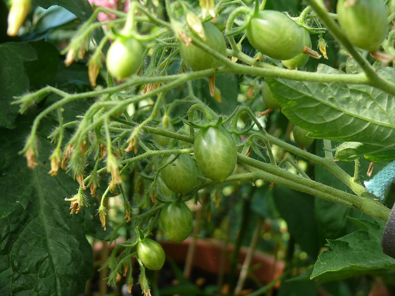 Bei mir ist sie schlecht zu fotografieren - steht mittenmang der anderen Tomaten.