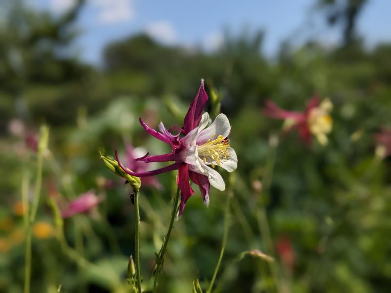 Hier frage ich mich, ob es im August noch Blüten gibt, das Wetter ist ja wieder regnerischer, kühler. Natürlich blüht die A. formosa immer noch, aber auch die eine oder andere vom Barlow-Typ zeigt noch Farbe, ebenso 3 langspornige: die gelbe A. chrysantha, mein im Aufblühen zartgelb mit rosa Sämling, der zu fast weiß verblasst und diese A. canadensis Hybride.K hat geschrieben: ↑26. Jun 2023, 14:23
