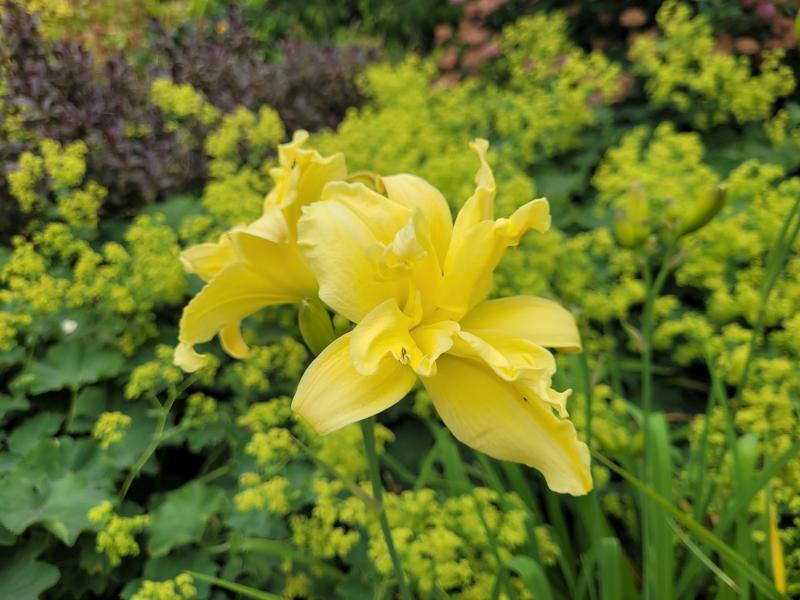 das ist eine super Taglilie. Ich hab sie heute im Wiesengarten auch fotografiert. Nett mit dem Frauenmantel dahinter. Double Cutie fehlt da noch. ;)