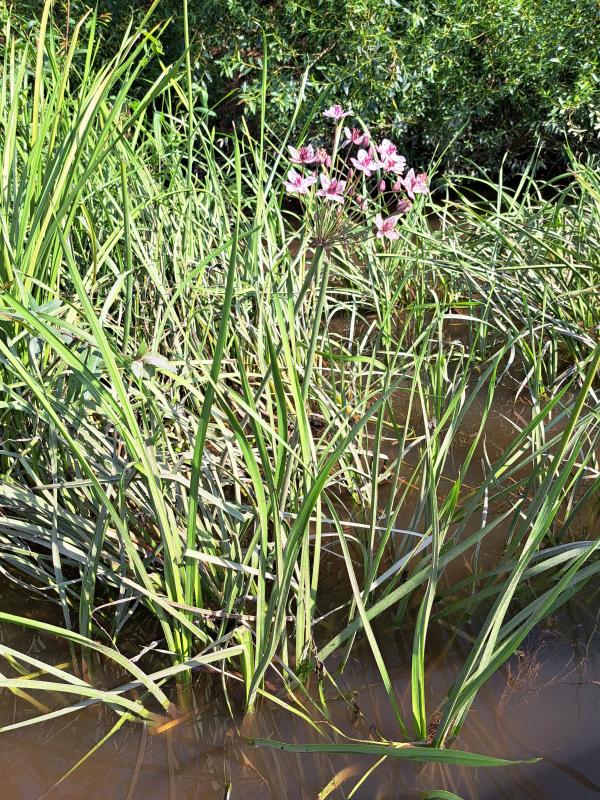 Am Oberlauf der Weser. Keine Ahnung, ob die Schwanenblume Butomus umbellatus dort heimisch ist. Hatte diese Pflanze bisher noch nie irgendwo wahrgenommen. Aber vorgestern fiel sie am Weserufer sehr auf :).