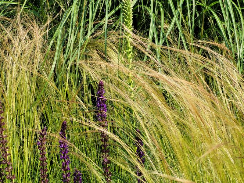 Stipa Calamagrostis hat sich bei mir nun als absolute Samenschleuder erwiesen, und ich habe glaube ich gestern beschlossen, es genauso wie tenuissima zu behandeln. Sprich der Elternhorst fliegt vollkommen raus, die Sämlinge dürfen an günstigen Stellen bleiben. Sie haben nur ein paar Halme, das sieht ganz hübsch aus, wenn sie sich durch die andern Pflanzen weben.