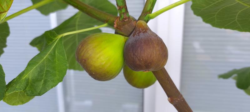 Die erste Feige auch hier und heute. Sorte unbekannt. Sie ist im ungeheizten Gwh ausgepflanzt.