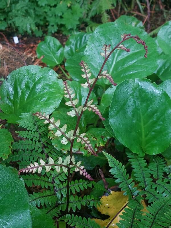 Athyrium otophorum var. okanum - schiebt nach einer kleinen Schaffenspause wieder einen seiner auffälligen Wedel
