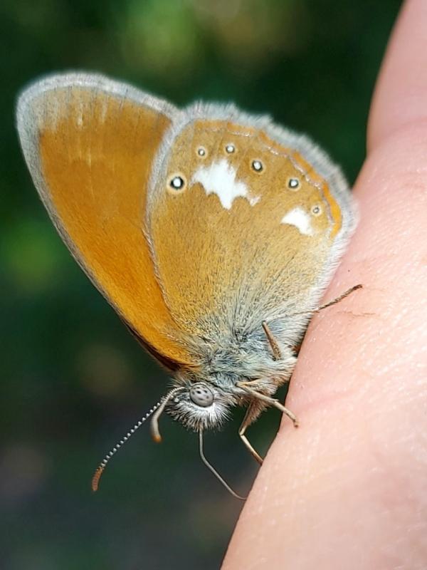 ...und ein sehr anhängliches Rotbraunes Wiesenvögelchen (Coenonympha glycerion).
