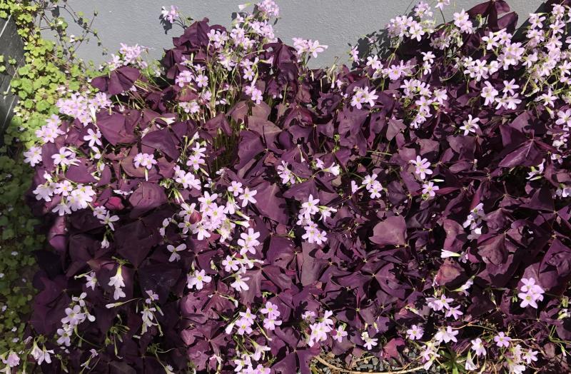 Oxalis triangularis, der violette dreieckige Sauer schmeckende Klee ist auf dem Teller immer ein Hingucker. Die Blüten sind natürlich auch hübsch und essbar. :)