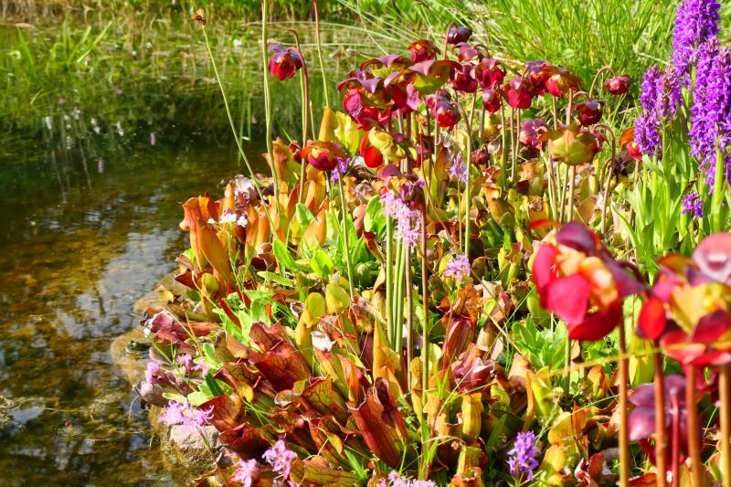 Epipactis palustris fühlt sich am Teichufer wohl und vermehrt sich durch Ausläufer und Aussaat.