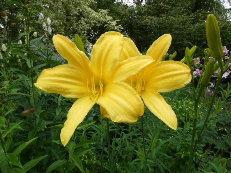 Stella d'Oro ist ein kleiner Schatz. Letztes Jahr habe ich sie unter einer ausufernden Eibe hervorgeholt, sie bestand nur noch aus einem kümmerlichen Fächer, den Sommer über gehätschelt, damit sie überlebt. Sie dankt es mir mit drei reich verzweigten Blütenständen.