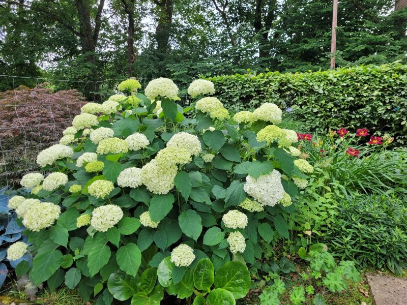 Bisher meine einzige Unvernunfts-Hortensie: Hydrangea arborescens ssp discolor. Eigentlich wollte ich keine Wasserschlucker mehr pflanzen.... ::) :P