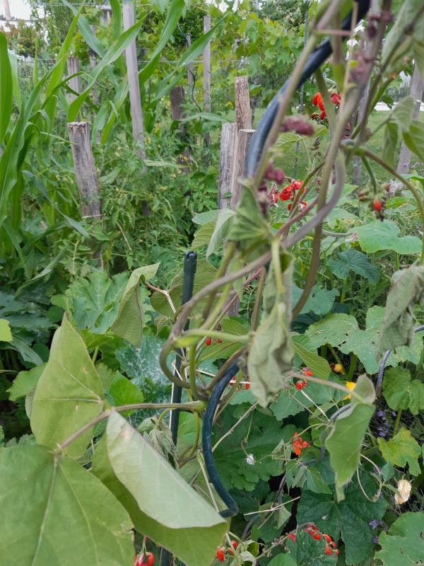 leider habe ich heute eine böse Überraschung im Garten erlebt - meine Feuerbohne lässt plötzlich die Blätter hängen. nichts geknickt, nichts gebrochen. Bei genauerer Inspektion musste ich feststellen, dass es sich wohl um eine Krankheit handeln muss - jeder Blattansatz ist stängelnahe dick knubbelig und weiter blattnahe auffallend dünner.