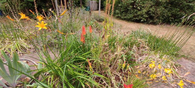 Hier ein NoName Papaver orientale vor Kniphofia 'Alcazar'.