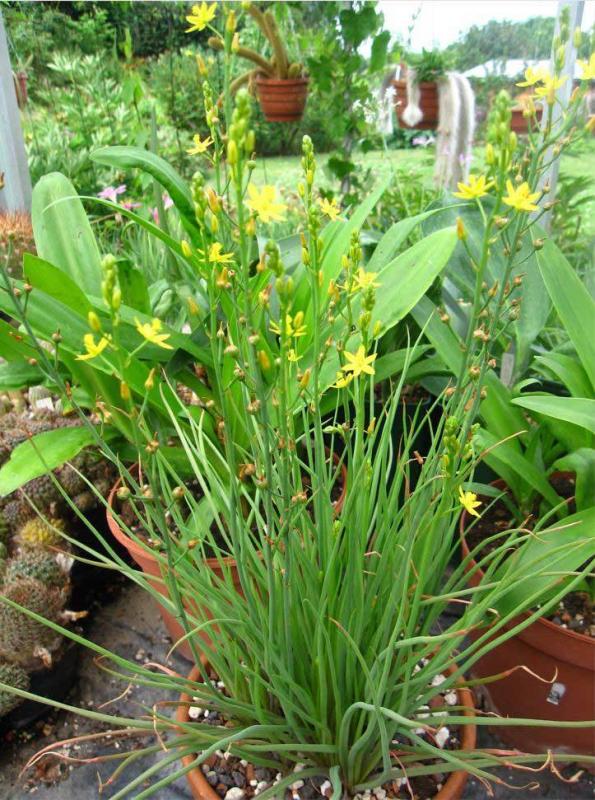 Hier haben sich die einjährigen Bulbinen eher wie ein kapriziöses Unkraut verhalten und haben nur dort gekeimt, wo es ihnen gefiel. Zum Beispiel in Töpfen anderer Sukkulenten, wo sie eigentlich störten. ::)