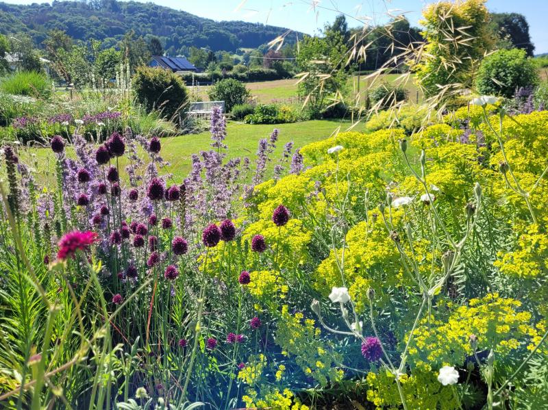 @solosunny: Das sieht wirklich herrlich aus in Deinem (alten) Garten. Und auch bei Dir gilt, was mir hier einfach nicht gelingen will, solch schöne, standfeste Stauden, die sich ineinander verweben, aber trotzdem nicht unmotiviert kreuz und quer übereinanderliegen. Mein Lehmboden ist in den trockenen Sommern zwar ein Segen in Sachen Wasserhaltung, ansonsten gedeiht hier aber alles viel zu üppig und lässt sich dann nicht bremsen (insbesondere das Unkraut...).