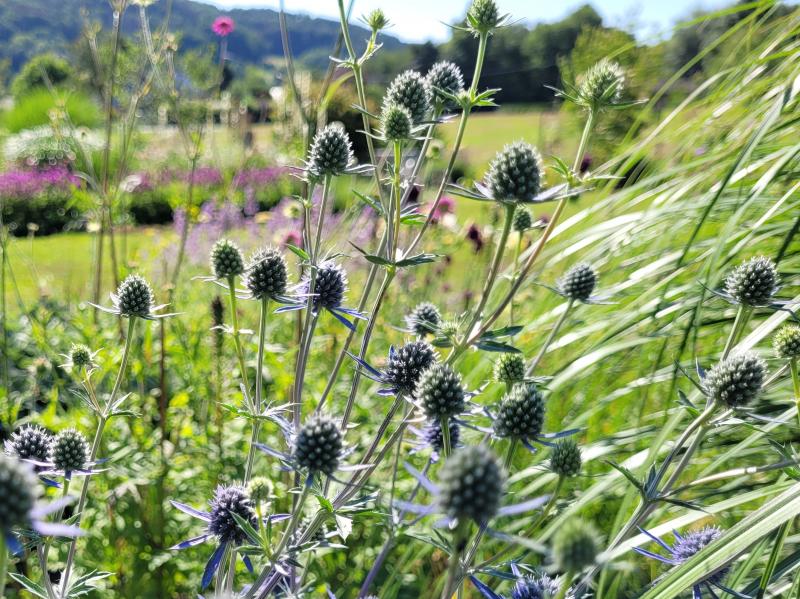 @lerchenzorn: Das mit der Höhenstaffelung ist hier so eine Sache, natürlich versuche ich schon, die Wuchhöhe der Pflanzen im Hinterkopf zu behalten. Die klimatischen Bedingungen machen mir allerdings jedes Mal einen Strich durch die Rechnung; wenn es ein trockenes Frühjahr gibt, sind viele Stauden kaum kniehoch, dieses Jahr sind alle mindestens brusthoch gewachsen. Was hoch wird und sich nicht anlehnen kann, fällt irgendwann unweigerlich um, sei es durch die halbschattige Lage hier am Hang oder wie gesagt, weil nun das Wasser fehlt.