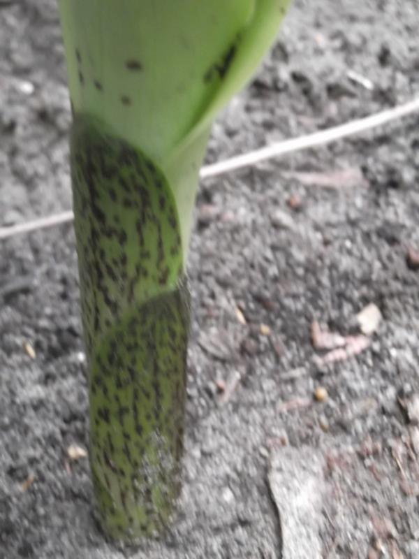 und nun wie sie sich entwickelt hat, mit ihren braunen Tupfen an der Blattbasis.