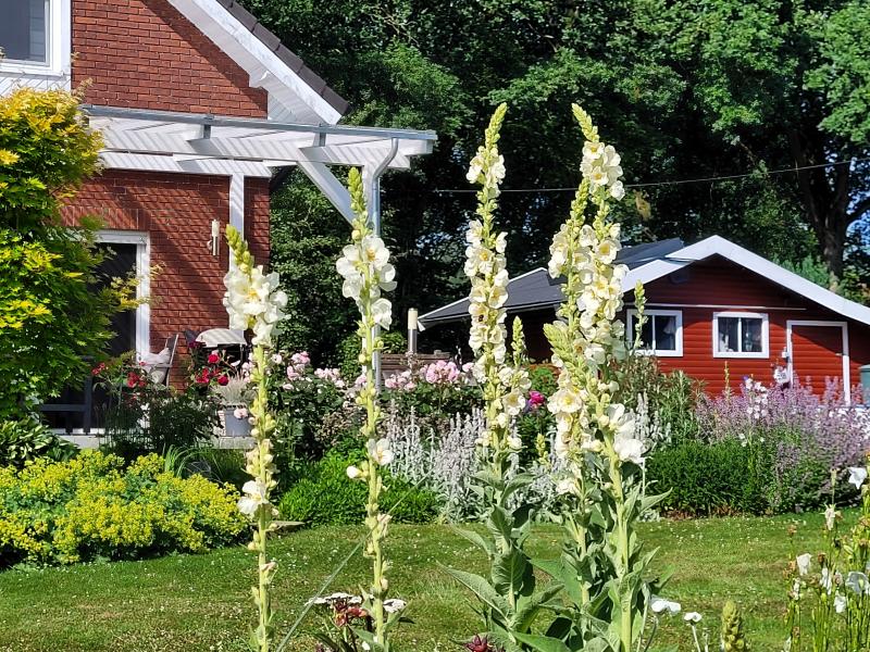 Mein schwerer, nasser Boden ist leider nicht verbascumfreundlich, V. nigrum und blattaria sind aber völlig unkompliziert und tauchen an allen möglichen und unmöglichen Stellen durch Selbstaussaat auf. Das neu eingezogene Verbascum phlomoides in der weißen Form hat zumindest auch schon ein Jahr im Beet überlebt, zu meiner großen Freude. Vor bald 40 Jahren hatte ich einmal ein reinweiß blühendes, zierliches Verbascum in einem Gartencenter als V. chaixii gekauft und leider bald verloren. Schade, es war sehr hübsch und ich weiß bis heute nicht, was es gewesen sein könnte. Was früher als Verbascum chaixii angeboten wurde, war in der Regel wohl nigrum, das klingt nur nicht so toll und ist ja mehr oder weniger dasselbe, wie pearl schreibt. Als ´Wedding Candles´ wird es wohl nur der besseren Vermarktung wegen angeboten, so sehen eigentlich alle gut etablierten Exemplare in meinem Garten aus, die lange vor dieser Namensgebung hier Einzug hielten.