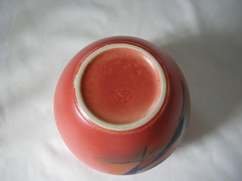 Voila. Das Dekor ist nur auf einer Seite, Rest einfärbig rot. Innen ist sie dunkel glasiert.