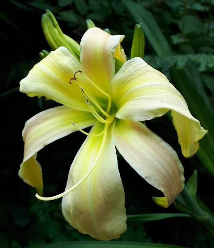 immer wieder stellt sich heraus, dass man vieles ausprobieren muss, um dann bei den richtig guten Sorten zu landen. Desert Icicle ist jeden Tag perfekt. Der einzige Nachteil ist, dass sie immergrün ist und im Winter schleimiges Laub zur Schau tragen muss und wenn es hart auf hart kommt, erfriert sie eben. Aber bis dahin erfreut sie.