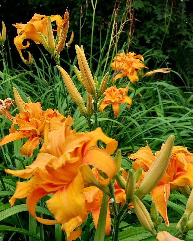 Hemerocallis fulva `Flore Pleno ´, bzw wohl auch `Kwanso´, leuchtendes Orange besonders im Abendlicht.