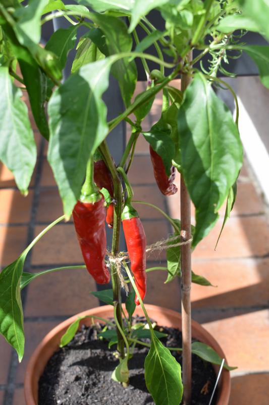 Mit dem Wachstum der Chilis auf dem Balkon bin ich recht zufrieden. Stehen im 20L Baueimer auf dem Südbalkon. ;D
