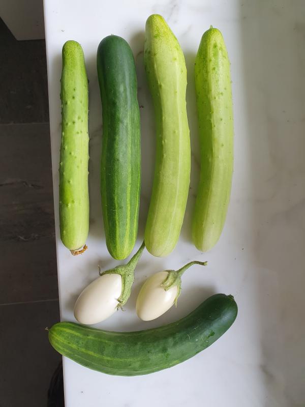 Ich bin ganz begeistert von meinen ersten Gurken und meinen ersten Auberginen aus meinem ersten Gewächshaus.