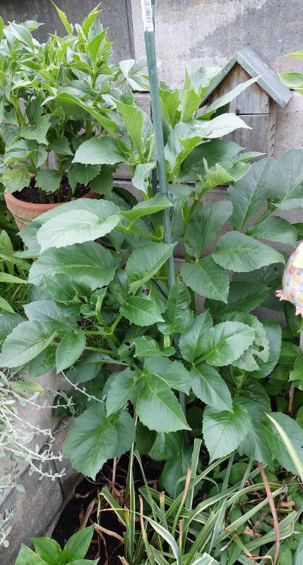 Danke. Diese hier, Cafe au Lait, ist eine Knolle vom letzten Jahr, die ungeteilt im Boden geblieben ist. Hat 4 kräftige Stängel. Jetzt (ungedüngt) ca. 80 cm hoch.