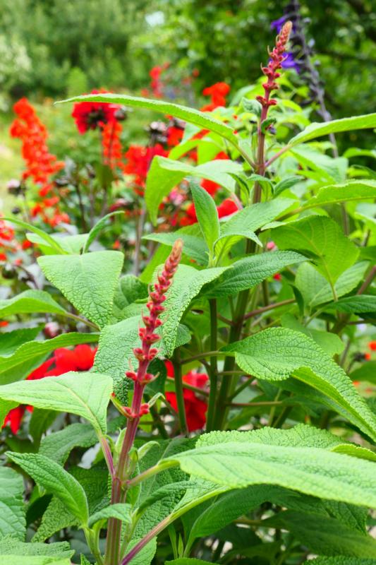 ...oder Dahlie Bishop of Llandaff mit Salvia Amistad, S. darcyi etc...