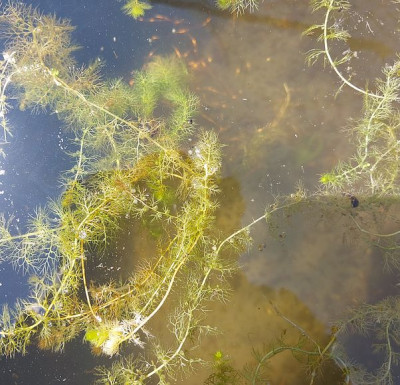 Ich habe Utricularia australis. Auf dem bild kann man eine weiter Methode sehen die Mücken zu dezimieren. Ich habe vorübergehend auch ein Stück Kupferlitze versuchshalber dort eingesetzt.
