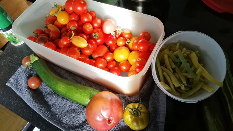Das haben wir in den letzten Tagen geerntet (Tomaten sind im entsprechenden Thread).
