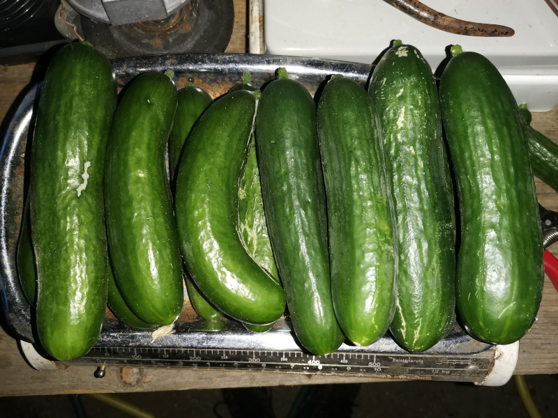 Was man sagen ist das die Sorten beide tauglich sind als Ersatz für Printo und das es auch ohne Gewächshaus möglich ist, pro Gurkenpflanze im Schnitt eine Gurke pro Tag zu ernten.