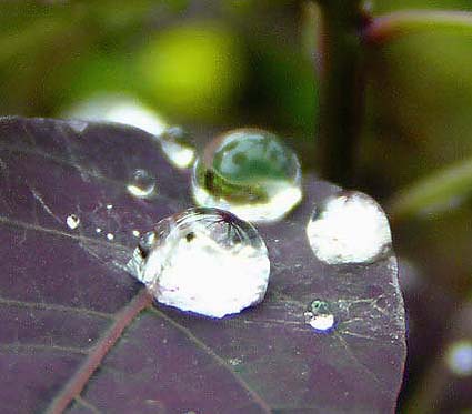 Hach, ich muss nur meine Bilder von den nassen Tagen genauer anschauen! Hier ist ein interessanter Effekt, im ersten Tropfen spiegelt sich das Blatt oben... seltsam...