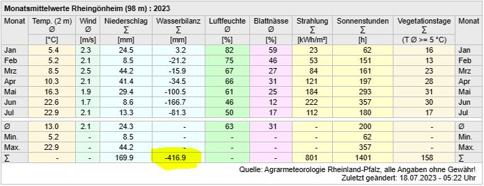 Könntest du, ja klar. Du kennst nur die Situation nicht. Die 15mm gestern waren ein Anfang um ein Defizit abzumildern, das mehr als 60cm Bodentiefe umfasst.Gartenplaner hat geschrieben: ↑18. Jul 2023, 13:46