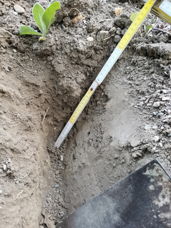 Als wissenschaftlich denkender Mensch reichten mir schon meine empirischen Regnerversuchen von 2018, wo nur die oberen Zentimeter nach stundenlangen Beregnen angefeuchtet waren, dies nicht mehr zu tun, einerseits, da ich mit meinem Brunnen haushalten muss, da das Grundwasser nicht so schnell nachläuft, und der war nach den Aktionen eben leer, und andererseits, weil ich so die Wurzeln nach oben locken würde, was definitiv kontraproduktiv ist.