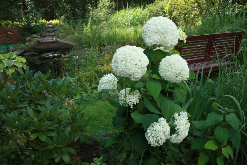 Diese Hortensie habe ich als 'Strong Annabelle' gekauft und in der Baumschule konnte man tatsächlich an ausgepflanzten Exemplaren den Unterschied zwischen strong und nicht strong sehen. Hier allerdings ist es nicht weit her mit strong, die Blütenbälle sind allerdings unglaublich und deshalb ist ihr Zweitname 'Incrediball'