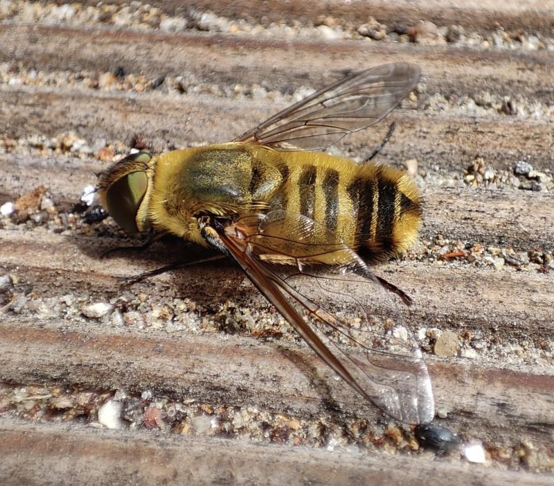Wirkt etwas gestreckter als die typischen Wollschweber. Vielleicht die sogenannte Hottentottenfliege?