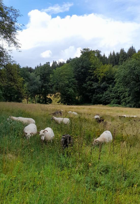 Für den Komfort meiner Goldrandschafe haben ich dann noch kurz die Sense geschwungen: Sie hatten einen Baum eingezäunt, um den sich leider Farn reindrückt. Ausgesenst, umgezäunt... jetzt haben sie die Vollausstattung: Schubberbaum mit Schatten. Äh Lederlenkrad mit Klimaanlage 8)
