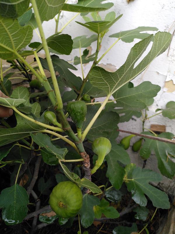 Die Herbstfeigen nehmen schön an Größe zu. Hab ein paar Triebe pinziert, zum Vergleich.