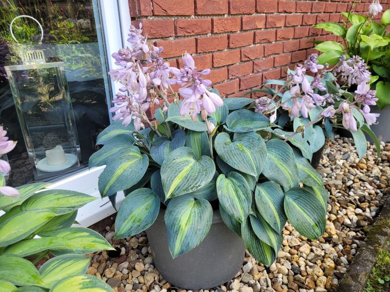 Das feuchte Klima scheint den Hosta hier richtig gut zu tun. Insbesondere natürlich im Topf, wo sie nicht von Schnecken gequält werden. Hier steht 'Touch of Class' bisher ohne Zicken... Sie hat richtig feste Blätter, ohne besondere Düngung und als Drainage einfach nur ein paar Steinchen am Topfboden. :D