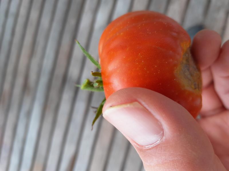 Die Hälfte meiner Tomaten hat heuer, wie auch schon letztes Jahr, diese Schäden. Kennt das jemand? Womit hängt das zusammen? Kann man diese Tomaten zumindest verkochen?