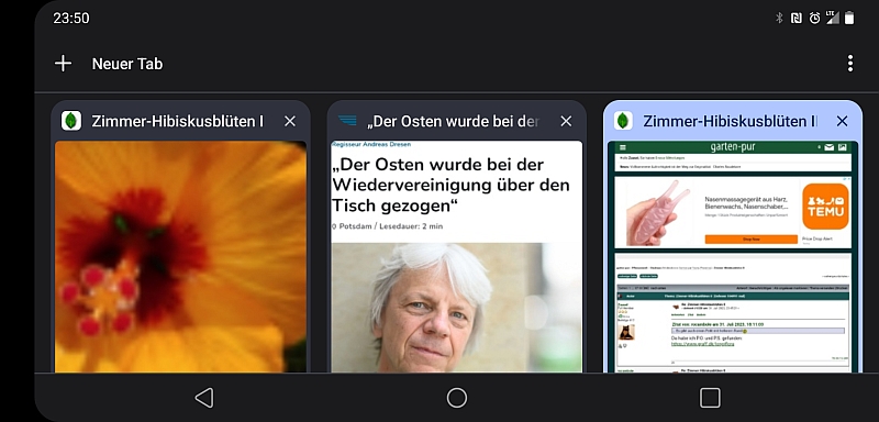 Die offenen Fenster zu schließen ist etwas anderes- schau dir mal den Screenshot an. Ich habe das Fenster mit der begonnenen Antwort selbst geschlossen. Über den beschriebenen Weg konnte ich zu meinem angefangenen Beitrag zurück und ihn vollenden.riegelrot hat geschrieben: ↑2. Aug 2023, 00:32Die vielen offenen Seiten auf dem Phone schliesse ich spätestens wenn ich ins Bett gehe und ich offline gehe.